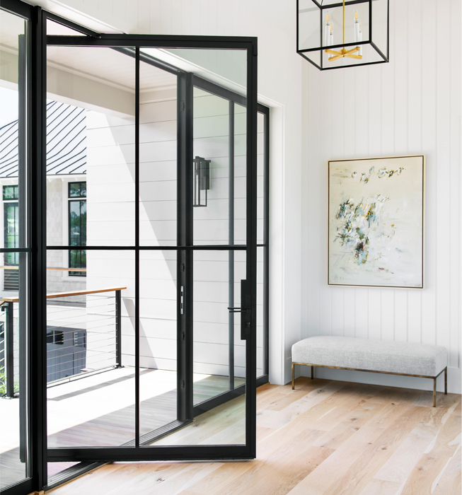 Pivot doors (also known as pivot-hung doors) adopt a non-traditional installation method, where the door leaf rotates on top and bottom pivot points instead of being fixed on the side with conventional hinges. This design offers several significant advantages: